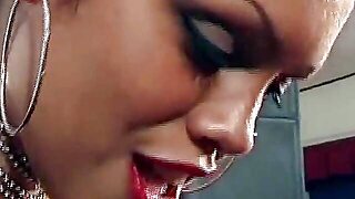 Sexy black camgirl gets banged by 2 cocks! Presented by EroticOnly