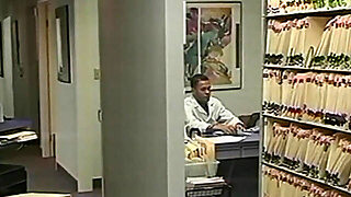 Slutty retro blonde undresses and fucks with 80s dude at doctor