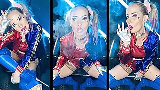 Harley Quinn cosplay smoking a Marlboro 100 for u her feeder