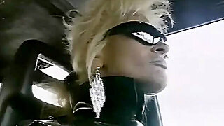Chainsmoking wearing all Leather with Red lipstick- Kinkerbell23