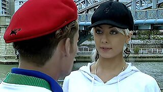 Brunette Lets Herself Be Pampered by Two Men. Awesome Outdoor Threesome!