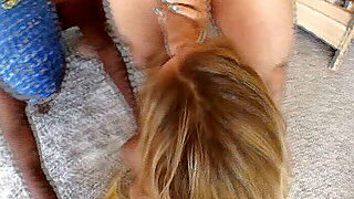 A chubby blonde babe from Germany loves sucking multiple cocks