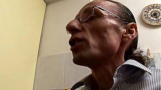 Wild and old German doxy gets screwed by 2 hard schlongs