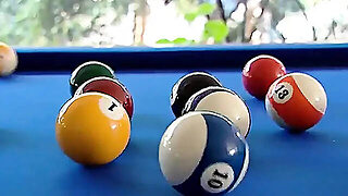 A beautiful dark haired German babe loves sucking a cock after a game of pool