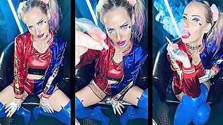 Harley Quinn cosplay smoking a Marlboro 100 for u her feeder